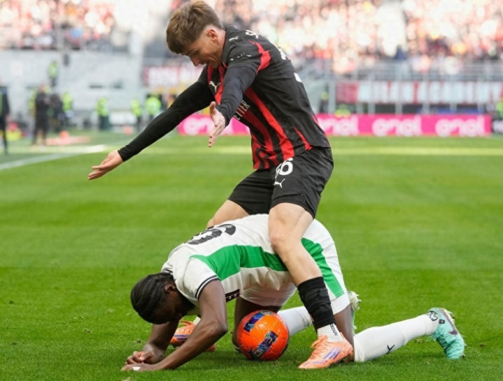 第34分钟,洛夫图斯奇克助攻,巴尔泰萨吉后点推射破门,打入职业生涯一线队第一球,AC米兰1-1萨索洛。