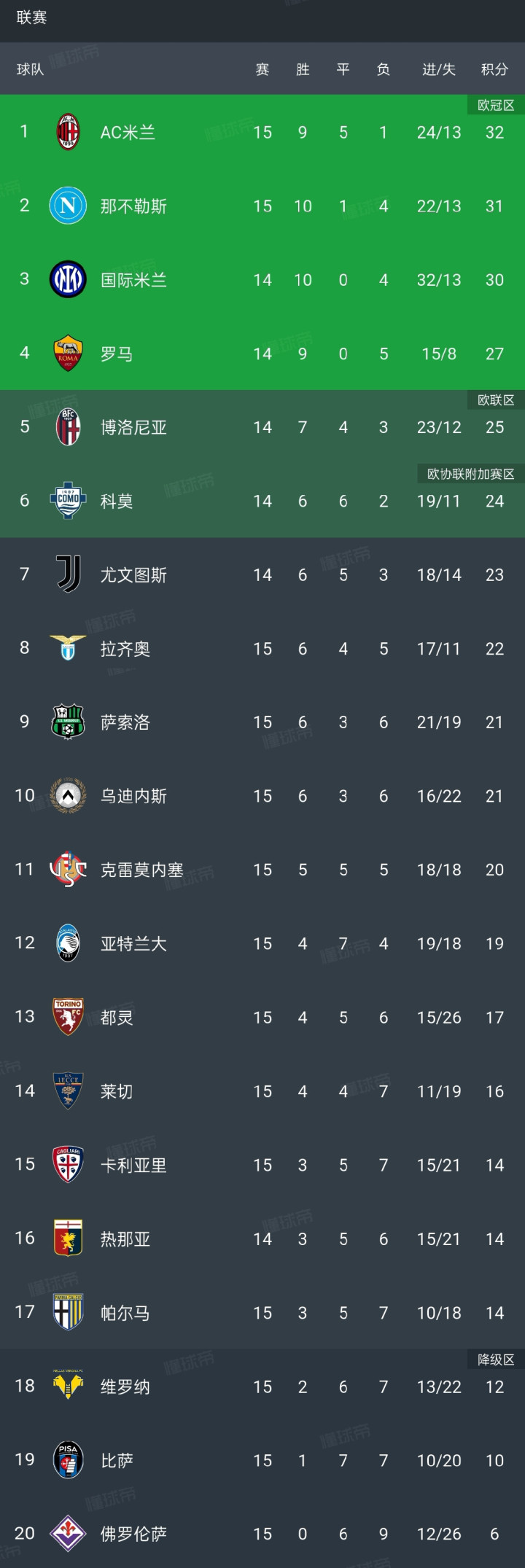 北京时间12月14日晚间至15日凌晨,意甲联赛第15轮先后结束了三场,那真是有喜有忧!领头羊AC米兰对阵升班马2-2平了,本赛季三次对阵升班马两平一负;那不勒斯对阵乌迪内斯0-1输了,怒其不争;国际米兰就有了成为领头羊的机会。佛罗伦萨主场1-2遭保级竞争对手维罗纳绝杀,连续15轮不胜,陷入了绝境啊。意甲联赛上演了疯狂一夜,以下是三场比赛的简单概述。